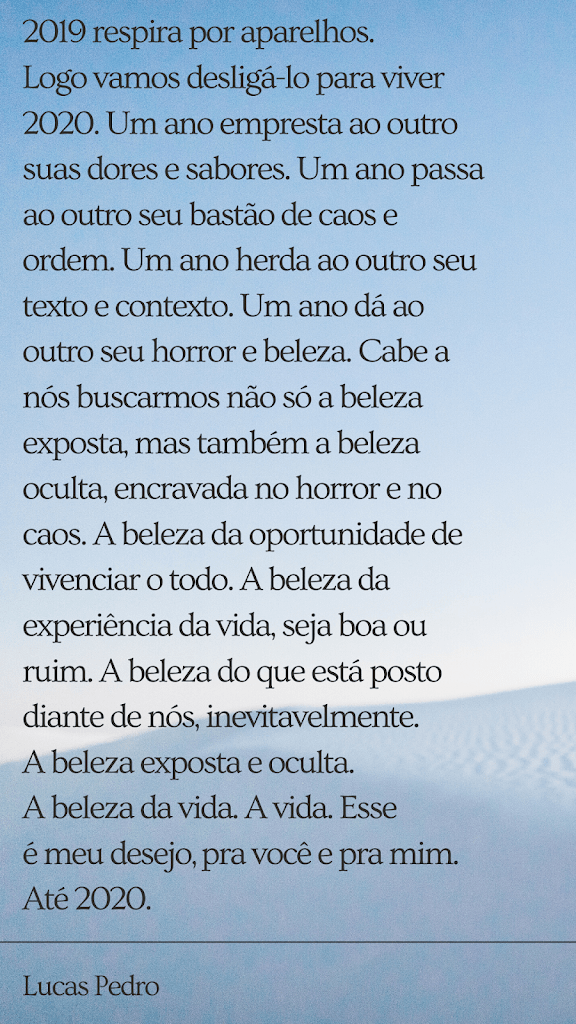 Um ano empresta ao outro suas dores e sabores.